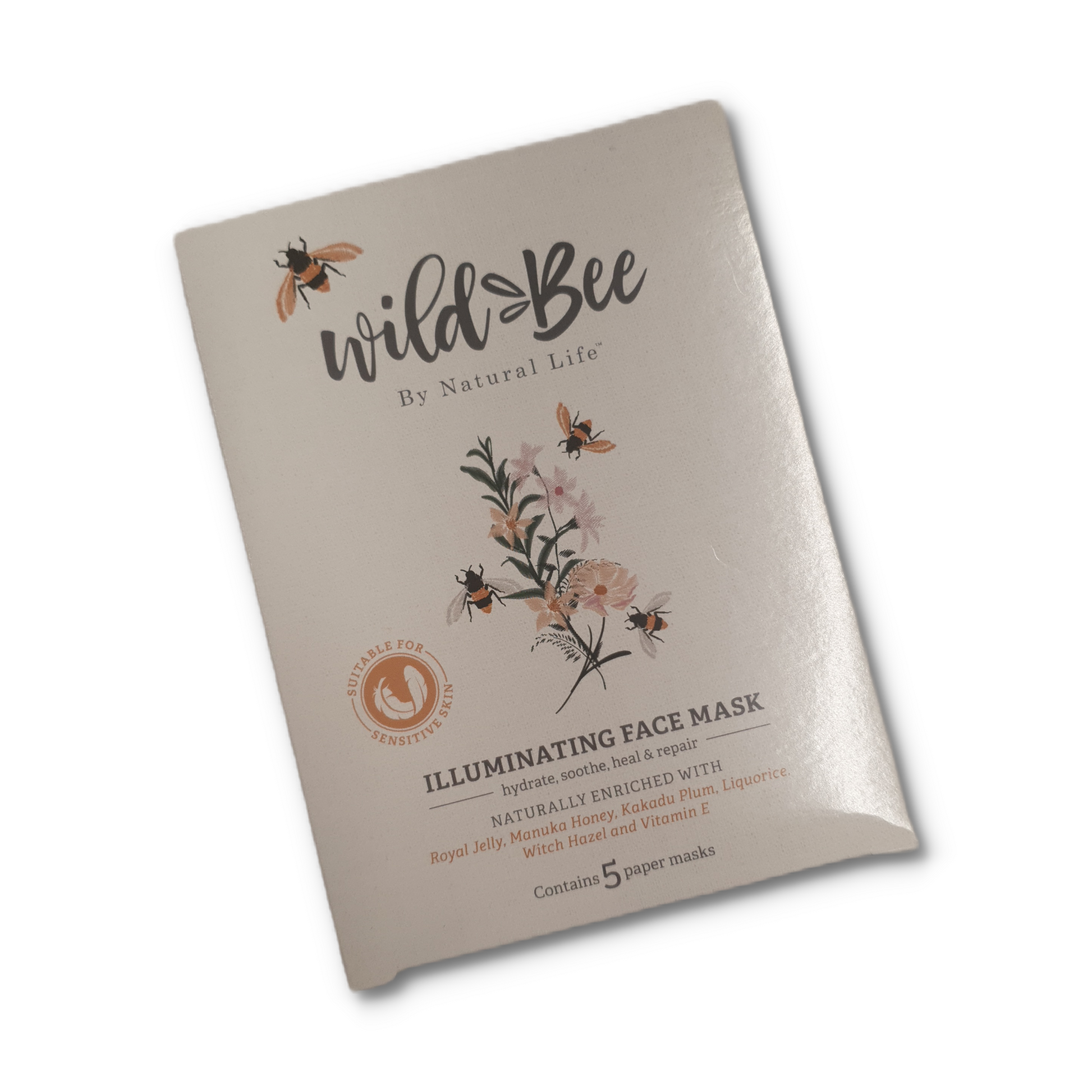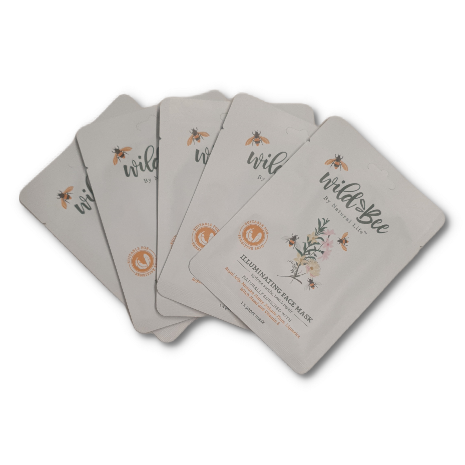 Wild Bee face mask pack of 5 paper masks.